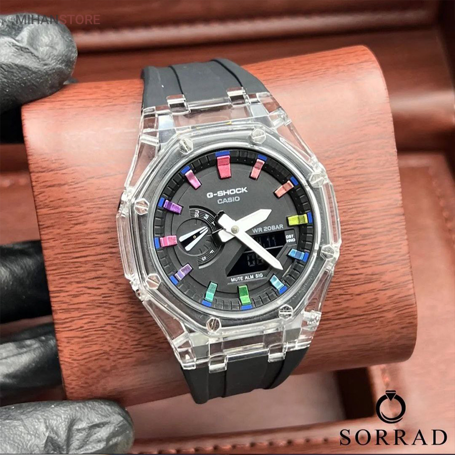 ساعت های جی شاک به دلیل طراحی مقاوم، کارایی بالا و تکنولوژی پیشرفته، به یکی از محبوب‌ترین انتخاب‌ها برای علاقه‌مندان به ساعت مچی تبدیل شده‌اند. این ساعت‌ها علاوه بر مقاومت در برابر ضربه و شرایط سخت، با قابلیت‌های متنوع و طراحی‌های مدرن، مناسب برای استفاده در شرایط مختلف هستند. یکی از ویژگی‌های برجسته این ساعت، قابلیت نمایش دو زمان به صورت همزمان است. این ویژگی برای کسانی که به طور مکرر سفر می‌کنند یا نیاز به پیگیری دو منطقه زمانی مختلف دارند، بسیار مفید است. صفحه مشکی ساعت با نمایشگرهای دیجیتال و آنالوگ ترکیبی، علاوه بر خوانایی بالا، به طراحی آن جذابیت بیشتری می‌بخشد.ساختار این ساعت، از مواد مقاوم در برابر ضربه و شوک تشکیل شده است که از آن در برابر شرایط نامساعد محافظت می‌کند. مدل GA-2100 با طراحی شیک و ویژگی‌های منحصر به فرد، انتخابی ایده‌آل برای کسانی است که به دنبال ترکیبی از دوام، کارایی و استایل هستند.
